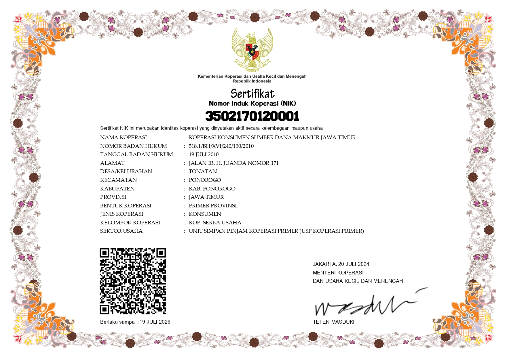 11 April 2022 Koperasi SDM melakukan Perubahan Anggaran Dasar dengan merubah jenis koperasi dari koperasi serba usaha menjadi koperasi konsumen melalui akta notaris nomor 17 dan pengesahan dari Kementrian Hukum nomor PAD : AHU-0000109.AH.01.38.TAHUN 2022